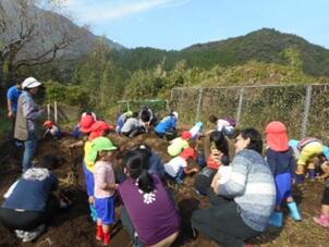 28日(月)は幼稚園もフリー参観日の1日目でした。幼稚園は保護者と一緒に芋掘りを行い、家庭教育サポートプラグラムからトレーナーの田中要一氏を招いて「家庭のしつけとルー-ル」についての講演も行いました。保護者同士が情報交換する場もあり、充実した時間でした。