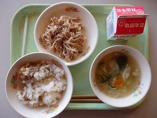 た。また、みそ汁は、きのこがたっぷり入っており、今日のメニューは秋を感じ