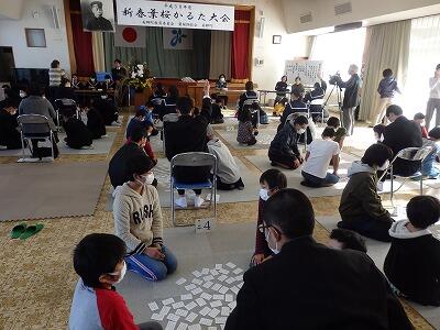 た。とても、ほのぼのとした楽しい集会でした。上の写真は、1年生が6年生に手作りプレゼントをしているところです。