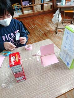 4年生の理科の学習で「閉じこめた空気と水」を学習しました。学習のまとめとして、シャボン玉や手作り空気砲で実験をしました。学んだことを思い出しながら、楽しく実験を行い、理解を深めました。