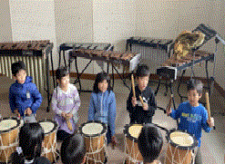 2年生が音楽の授業で太鼓の練習をしました。9日(水)にはグループにわかれて、自分で創作したリズムを繋いでの発表をしました。「わっしょい わっしょい」などのかけ声でそれぞれのリズムを繋ぎました。元気に優しくたたく姿が可愛かったです。