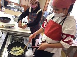 10日(木)に6年生が考えた1食分の献立の副菜を作りました。ポテトハンバーグやジャーマンポテト、大葉入りのたまごやきなど工夫されたものができました。2人一組で協力して片付けまで行えました。味もよく、満足していました。