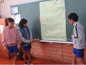 5年生は美郷科(総合的な学習の時間)で地域に伝わる伝統芸能を調べています。2学期には上野原臼太鼓保存会の方や若宮神楽保存会の方に来ていただき、由来や歴史から保存会の人の思いまで話を聞くことができました。そのまとめとして中間発表を14日(月)に行いました。身振り手振りを交えながら、調べたことをわかりやすくまとめ、発表できました。本番は3学期の参観日です。それまでに今日の反省を生かして、レベルアップして欲しいです。