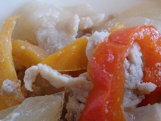 今日のズームアップは、豚肉の生姜焼きです。黄色や赤のピーマンが入っており、