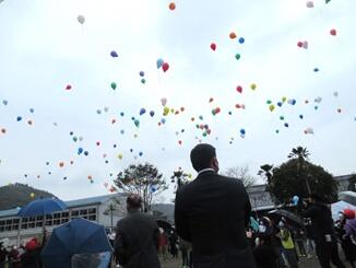7日(日)に参観日も兼ねて、延期した閉校記念行事を行いました。雨が心配されましたが、どうにか5・6年生は若宮神楽と上野原臼太鼓演舞、1~4年生は教室での参観日発表、そして全校での葉桜朗詠、記念碑除幕式を予定通り行えました。最後は学校へのお礼と未来への希望を込めてバルーンリリースを行いました。多くの参観、行事参加ありがとうございました。