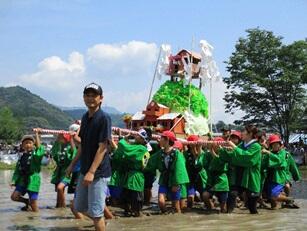見物客の多さにびっくりしていましたが、牛馬入れの様子に歓声を上げ、神楽や太鼓を見入っていました。太もも近くまで田んぼに足を入れながら元気よく「ヨーサヤ ヨーサヤ」のかけ声で祭りを盛り上げました。素晴らしいできのみこしや子どもたちの様子に会場から大きな拍手をもらい、子どもたちも満足した1日になりました。