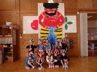 に立っているのは、ひまわり組さん(年長さん)ですが、いかに大きな鬼の絵である