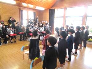 24日(水)に田代幼稚園の卒園式が無事に行われました。11人の卒園生、返事も言葉も修了書の受け渡しもしっかりでき、成長の様子を見せてくれました。保護者の方も大きくなった子どもの姿に感無量だったと思います義務教育学校でもがんばって下さい。