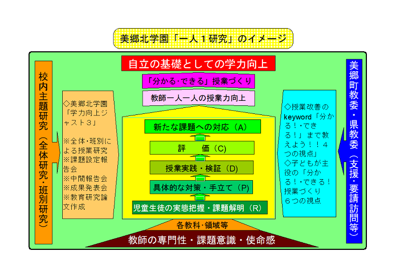 を示し、単に教科指導に限定せず、先生方の日常の業務を俯瞰的に捉えることでより広く深まりのある研究となることを考えました。また、先生方の得意な領域・ジャンルをさらに伸ばすことで、自らのキャリアプランを向上させることも確認しました。