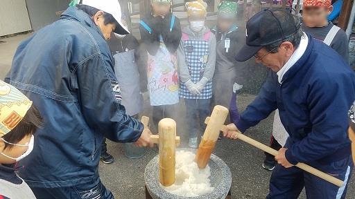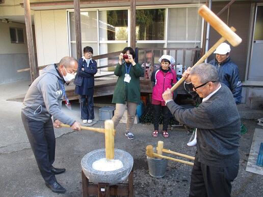 美郷町の長尾勇教育長と本校の末廣恭雄校長の強力タッグでもちをついていただきました。