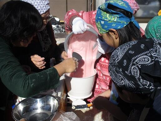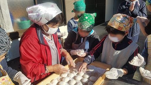 お姉さま方に丸め方を教えてもらいながら丁寧に丸めていきます。みんなとっても上手に丸めることができました。