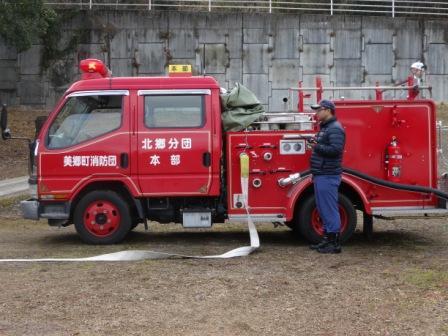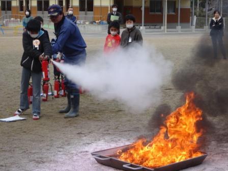 地域の消防団の皆様のご指導のもと、安全に体験活動をすることができました。体験をとおして、「消火器の使い方が分かった。」、「放水ホースがすごく重かった。」等の感想がありました。普段から訓練をされている消防団の皆様のすごさを改めて感じることができたようです。