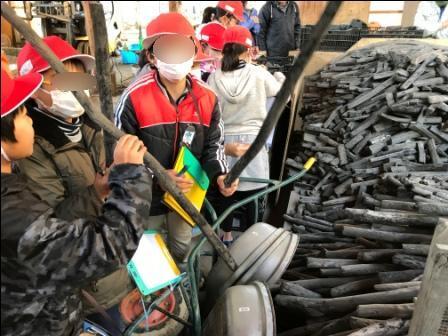 1月23日(火)、4年生の児童が地域で炭焼きをされている方の炭焼き窯を見学させていただきました。