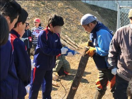 地域の特産物である椎茸の生産を体験できる、貴重な学びの場となりました。この原木は学校に設置し、1年半から2年後には収穫ができるそうです。