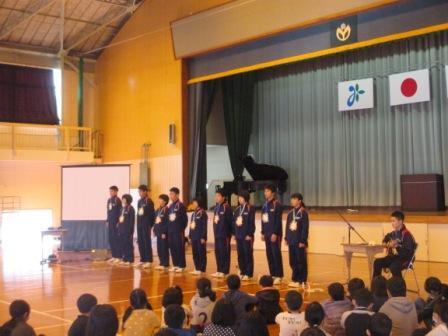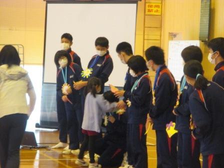 最後には、9年生からも歌のプレゼントをもらいました。大粒の涙を流しながら。9年生との別れを惜しむ小学部の子どもの姿もありました。卒業式さながらの感動いっぱいの会になりました。