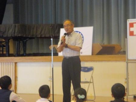 赤十字の方の講話では、赤十字がスイス発祥であることや、みんなのために自分ができることを進んで行うことの素晴らしさについてお話をしていただきました。