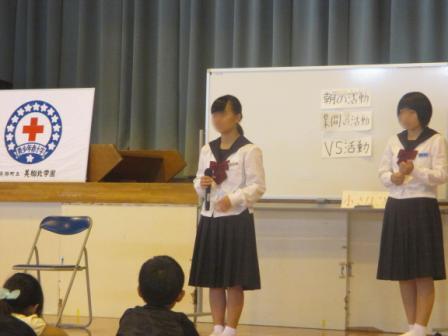 最後に、全校生活委員長と副委員長から、「普段からよくまわりを見てください。JRCのきっかけになることはたくさんありますよ。自分から気付いて、考え、実行していきましょう。」という言葉がありました。