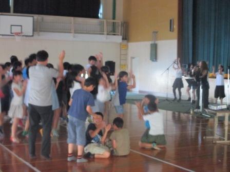謎のミュージシャンも登場したようです。子どもたちは興味津々。鈴なりになって一緒に歌いました。