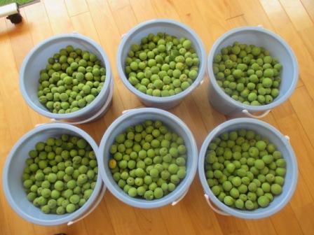 バケツ6杯ぶんもの梅が採れました。とても美味しそうです。