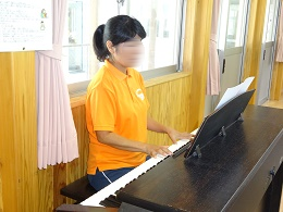 音楽担当のY先生の生演奏で、歌も歌いました。