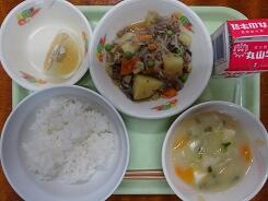 麦ごはん 牛乳 肉じゃが 春キャベツの味噌汁 日向夏