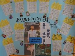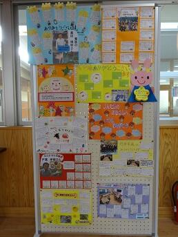 ここでは、調理員さんをはじめ、生産者の方のほか、JAや美郷町教育委員会の学校給食担当者の方などへの感謝の寄せ書きが展示してあります。黒木亜紀先生と髙瀬詩史先生のお二人の給食主任、そして児童生徒会を中心に企画された取組です。