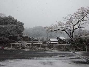 まるで水墨画のような世界が広がっています。今朝6時くらいから降り始めました。南国宮崎とはいえ、県の北部山沿いにある美郷町は、冬の寒さが厳しいところでもあります。ここ2週間は、ほぼ毎日氷点下の最低気温が続いています。この雪の影響で、今朝はスクールバスが少し遅れて到着しました。バスの運転手さんはもちろん、教育委員会の皆様のご配慮により、何とか通常どおりの授業ができています。本当にありがとうございました。