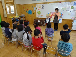 2月生まれは一人だけだったので、みんなの「おめでとう」の祝福を独占していました。明後日22日(木)が誕生日だというH・Zさん。誕生プレゼントは、バイクのレゴブロックだそうで、乗り物好きのH・Zさんらしいお祝いです。ハキハキと受け答えのできるH・Zさん、お誕生日おめでとうございます。もうすぐ小学生ですね!