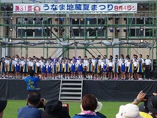 まずは、「うなま地蔵夏まつり」です。8月4日(土)に、北郷支所横のすまいる広場にて開催されました。今年の取組は、恒例のステージ発表(合唱・合奏等)のほか、児童生徒会が中心となって会場でのクリーン活動を行いました。「自分たちにできることを、地域のために」という考えのもと、今年度取り組んでいる環境教育の一環として取り組みました。ゴミの分別や会場内の清掃に取り組みましたが、来場者に「よく頑張っているね。ありがとう」と声をかけられ、誇らしそうにしている姿が印象的でした。また、中学部で作成した「竹灯ろう」も会場内に展示し、たくさんの皆様に感激していただきました。