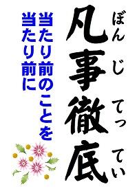 凡事徹底・・・基本的なことや小さなこと、当たり前のことを大切にし、それを繰り返し徹底して身に付けるということですが、「当たり前のことを当たり前にする」ということでもあります。誰でも何事でも、はじめから全てがうまくいくことはありません。「こうなりたい、こうしたい」というしっかりとした目標に向かって、コツコツと努力していくこと、身に付いた力を確かめながらさらにそれに磨きをかけていくことが求められます。