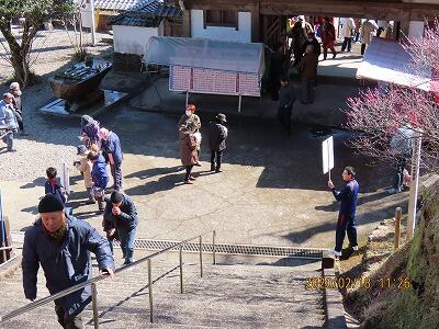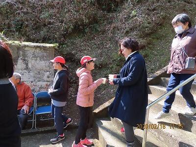 今日は後期ブロックが宇納間地蔵大祭でボランティア活動を行いました。茶屋グループではお茶やお菓子の振る舞い、お話のお相手、記念撮影等の活動をしました。同伴グループでは、一緒に登ったり、荷物を持ったりなどの活動を行いました。給水所グループでは、休憩用の椅子を準備し、お茶や声掛け等を行いました。冷たい風が吹く中、学園生の明るく元気な姿は、参拝される方々の心を温めているように感じました。