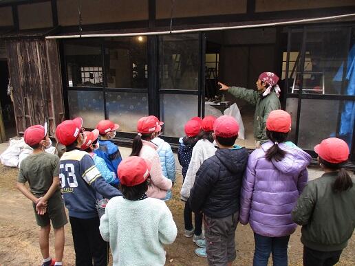 14日(木)は、3年生の校外学習「昔の人々の暮らし」として北郷入下に移住してきた上村さんのお宅でさまざまな体験をさせていただきました。今回は上村さんご夫婦のほかに、北郷出身のコダマさんにも左官の助っ人として手伝っていただきました。