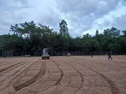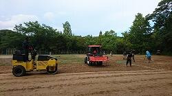 | | 8月30日(日) 今日は、夕方から「やっちみろかい」の方々に運動場の整備をしていただきました。夏休みの間に大きく育った雑草で覆われた運動場。重機で掘り起こし、手作業で草を集め、ローラーで平らにしていきました。これで、気持よく充実した運動会の練習ができます。「やっちみろかい」の皆様、ありがとうございました。これからも、学校へのご協力をお願いいたします。 |