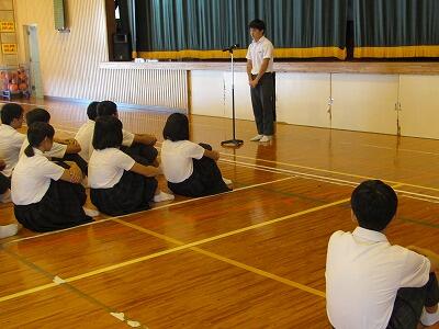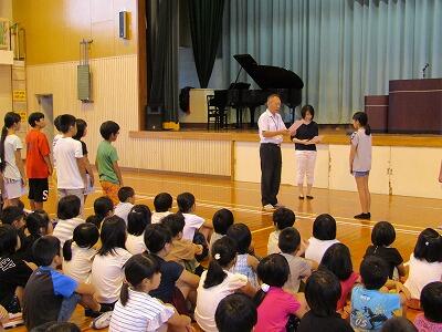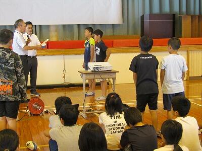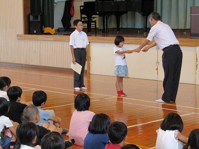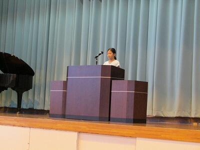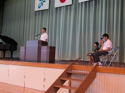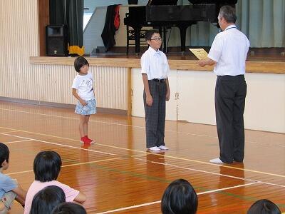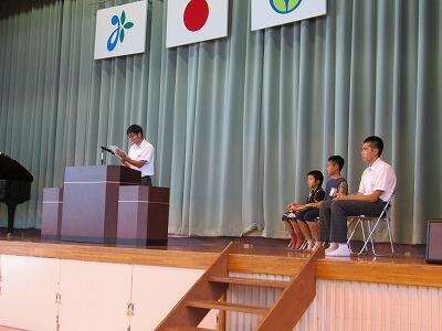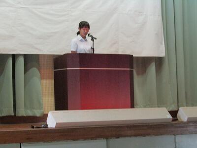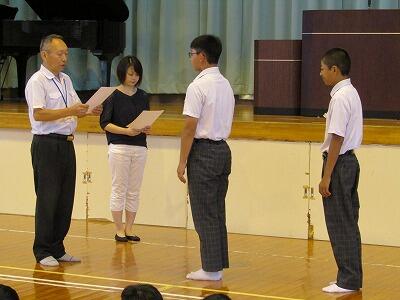 | | 7月19日(金) 今日は1学期の終業式が行われました。式では、1学期を振り返って、4名の学園生が話をしました。式の後に、多読賞の表彰や、夏休みの過ごし方についてのお話がありました。夏休みには、水泳大会、公民館清掃、うなま地蔵夏祭りでの出演やボランティア清掃、子ども議会、職場体験学習など多くの行事等が予定されています。命を大切に。心身ともに充実した夏休みを過ごしてほしいです。 | |