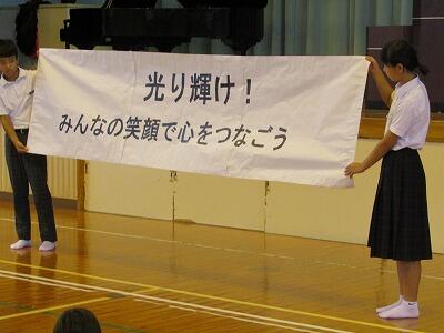 | | 今日は2学期の始業式が行われました。式では、2学期に頑張りたいことについて、3名の学園生が話をしました。式の後に、美郷町水泳大会の表彰とソフトテニス大会の表彰、北郷フェスタスローガンの発表がありました。2学期は、北郷フェスタ、小学部修学旅行、小学部宿泊学習、ロードレース大会など多くの学校行事等が計画されています。これらの経験を通して、心身ともに確実に成長してくれることを期待しています。 | |