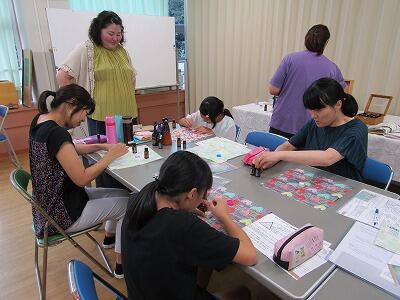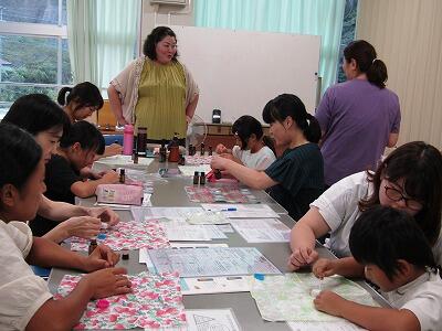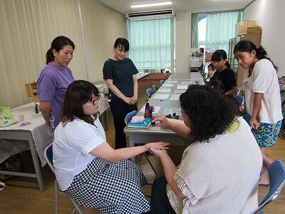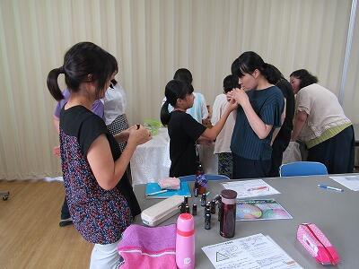 | | 9月10日(火) 今日は、中後期ブロックの学園参観日でした。放課後に、家庭教育学級【アロマセラピ講座】が行われました。今回は、親子で参加する講座です。始めに、アロマセラピの基本的な知識について学びました。その後、好きなカオリを選び、親子でハンドマッサージをしました。最後に、オリジナルのハンドクリームを作りました。とてもよいカオリに包まれ、楽しくリラックスした特別な時間を過ごすことができました。ありがとうございました。 | |