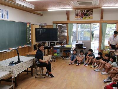 | | 9月18日(水) 今日は、月に1回の読み聞かせの日です。今回は、学園の先生も、数名、読み聞かせにチャレンジしました。子どもたちは、本の世界に入り込んでいました。 |