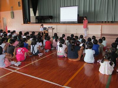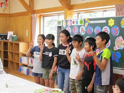 今日は、バースデイ給食がありました。6月と7月生まれの幼稚園児から小学部、中学部の児童生徒、そして先生が集まっての誕生会です。給食には、特別にお祝いのデザートが付いています。牛乳乾杯、誕生日の歌、クイズ大会など、楽しい時間を過ごしていました。