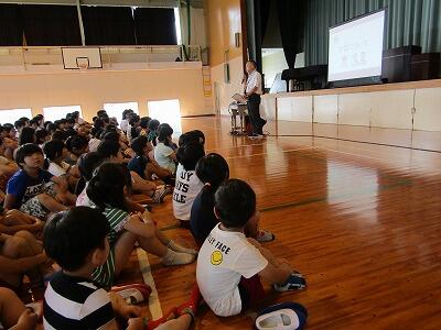 今日は、推戴式が行われました。本校の部活動は、男子ソフトテニス部、女子ソフトテニス部、陸上部があり、6月8日(土)にソフトテニス競技の大会が行われました。その結果、団体と個人で女子が優勝しました。また、個人男子2ペア、個人女子2ペアが県大会へ出場します。陸上部は、6月15日(土)、16日(日)に大会が行われます。精一杯、頑張って欲しいです。