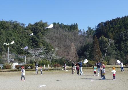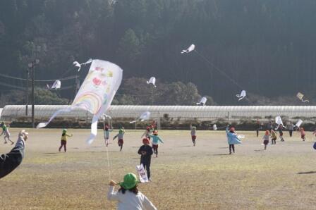 1月10日(火)に幼稚園~2年生が旧北郷小学校の運動場でたこあげ大会を行いました。