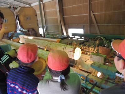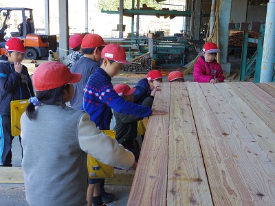今日は北郷の基幹産業である林業を学ぶため、4年生が木材加工センターへ加工の現場を見学に行きました。