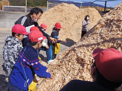 2月7日に3年、5年、7年生が椎茸の駒打ち体験を行いました。