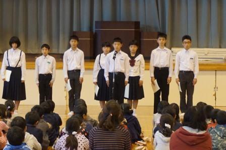 この集会で心に残ったことばがありました。それは、「歓迎する」のではなく、「仲間入りをお祝いする」というものでした。家族のような関係性をもった子どもたち。一人一人が大切にされていることを再認識した集会でした。