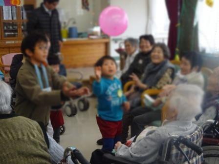 利用者の方々と一緒に歌「ふるさと」を歌ったり、風船遊びをしたりしました。