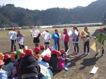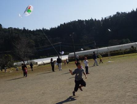 1月10日(火)に幼稚園~2年生が旧北郷小学校の運動場でたこあげ大会を行いました。