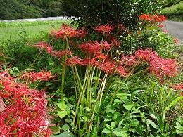 この花を見ると、妙に心寂しくなります。鮮やかな色の花なのになぜか、もの悲しくなるのです。これといった思い出があるわけではないのですが・・・。子どもの頃に見た「日本むかし話」の影響でしょうか。唯一思い出せるのは、小学校のときに下校途中の道すがらに咲いていたことくらいです。5~6㎞ほどの道を毎日歩いて通学していました。田舎の田んぼの畦道や土手には、いつの時期も季節の植物が満載でしたが、彼岸花もその一つでした。夏から秋に変わる空気とともに現れるこの花に季節の移り変わりを見ていたのでしょうか。