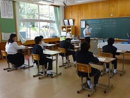 新学期が始まっての初めての参観日。子どもたちは少し緊張気味でしたが、どの学年も落ち着いた参観授業を行っていました。授業は、幼稚園が「制作」活動を、小学部は全学年「国語」を、中学部は7年生が「数学」8年生が「道徳」9年生が「学級活動」をそれぞれの教室にて行いました。