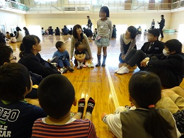 本学園の特色ある活動の一つが、幼稚園生から9年生までの全学園生で行う異学年交流活動です。全学年を縦割り班にした「じぃ~ぞ班」がその母体。「じぃ~ぞ」とは地域の宇納間地蔵尊の「お地蔵様」が由来だとか。