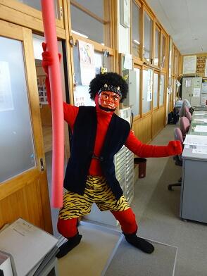 「そうか、節分か。」と合点がいきました。北学園では、恒例になっている鬼の出前サービスです。幼稚園から小学部まで、鬼役の職員が各学級を回って豆まきを演出します。昨年は中学部の数学科の教員と事務職員でしたが、今年は小学部の教務主任が大役を担ったようです。超がつくほど多忙な教務主任ですが、貴重な空き時間を割いて子どもたちのために一肌脱いでもらえたようです。3日(日)は「節分」。家庭にも学校にも、社会にもたくさんの福が訪れますように。真方先生、お疲れ様でした。