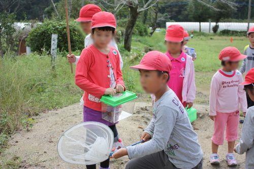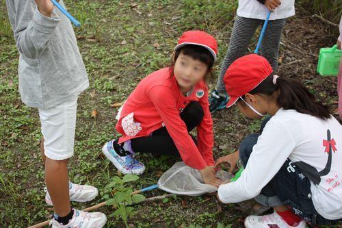 女の子たちも虫に臆することなく、手でつかんで虫かごに移していました。